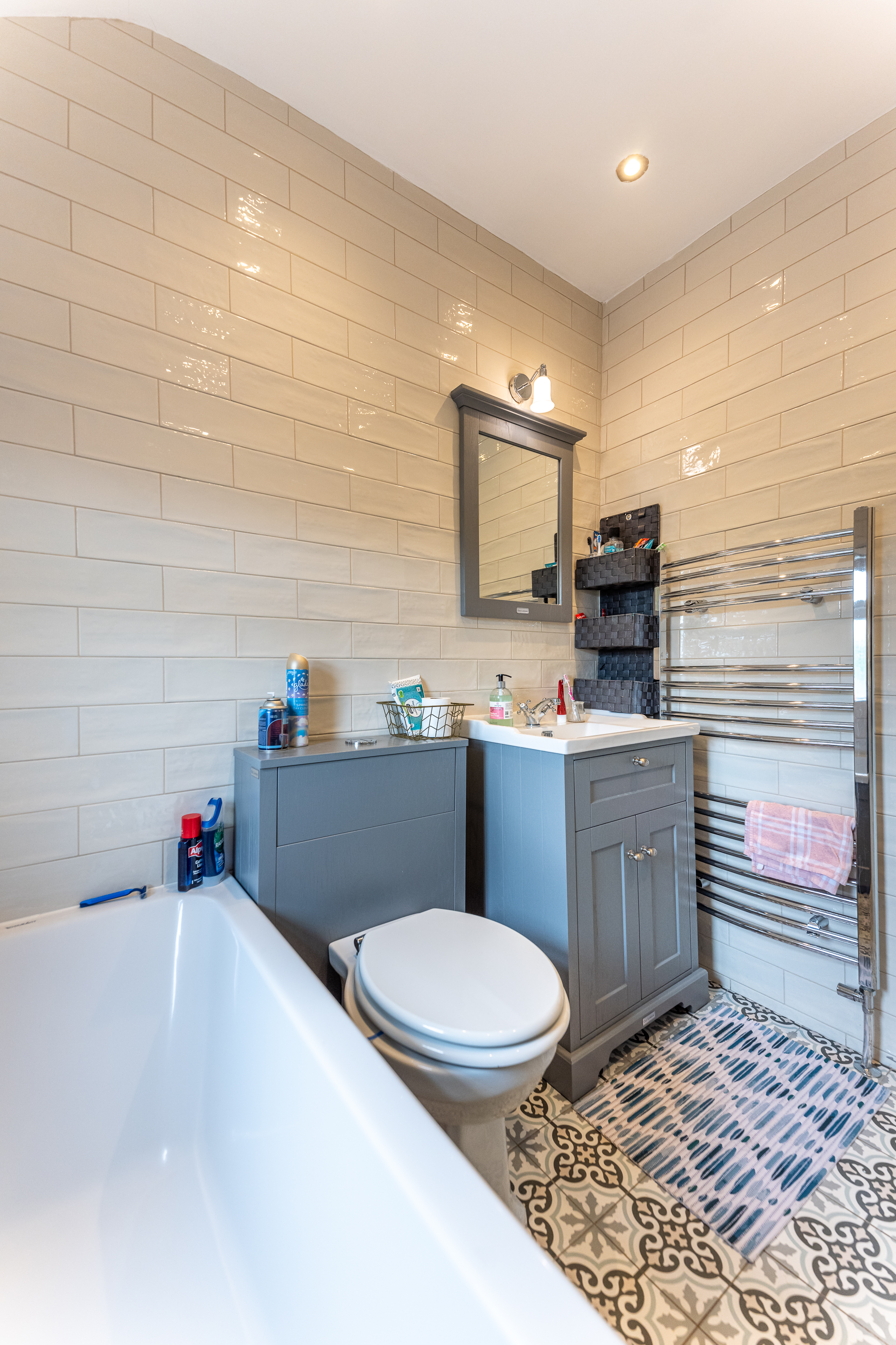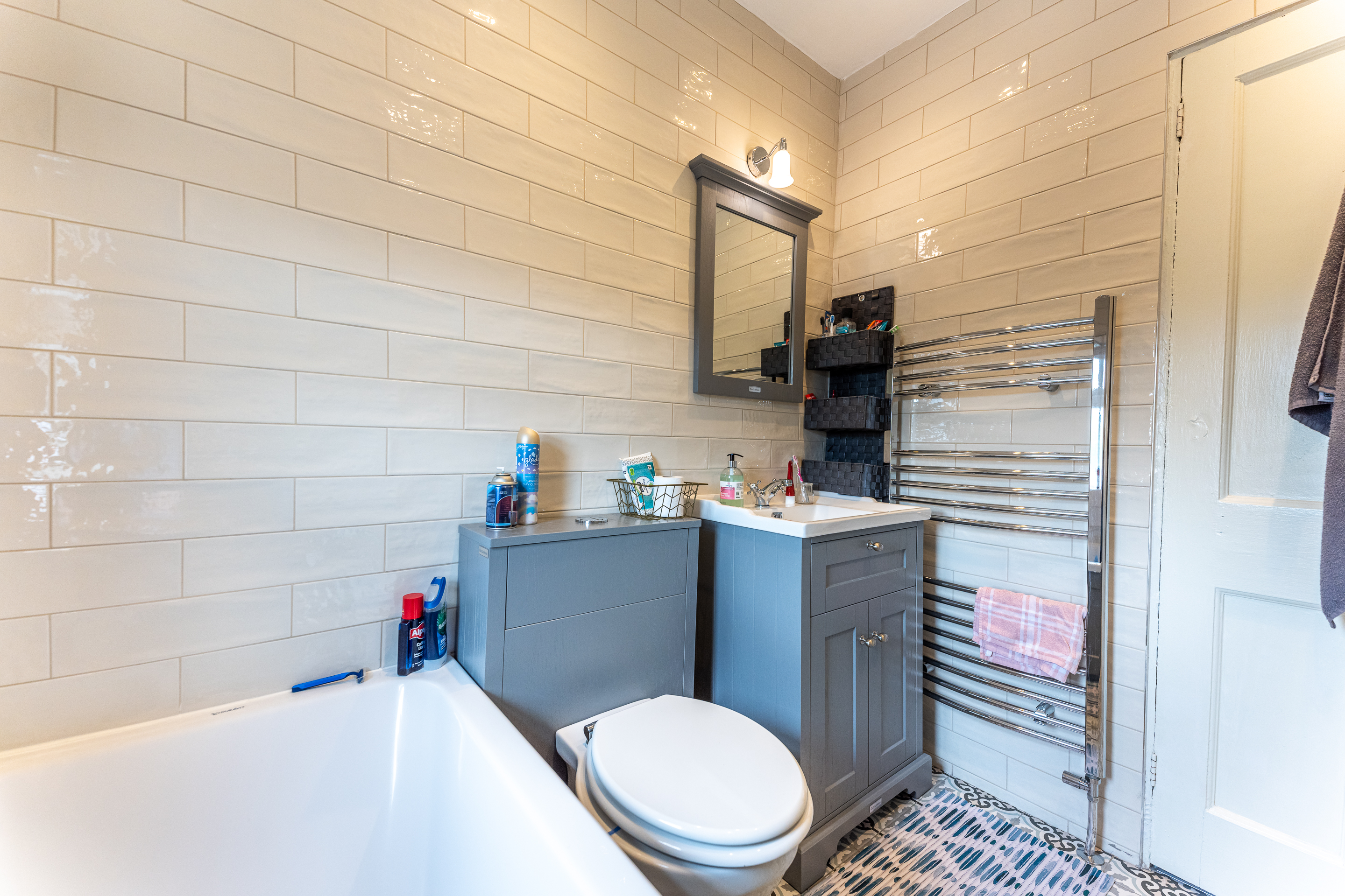 The back garden is paved and comes with raised flower beds. The utility room comes with good storage and cleaning facilities. The front garden comes with cobbled blocks surrounding the resin-bound surface. The 1st-floor landing and stairs are carpeted and lead to the immaculately finished bathroom. The new bathroom was installed in 2020 and includes a rain shower head, bath, and is tiled floor to ceiling.