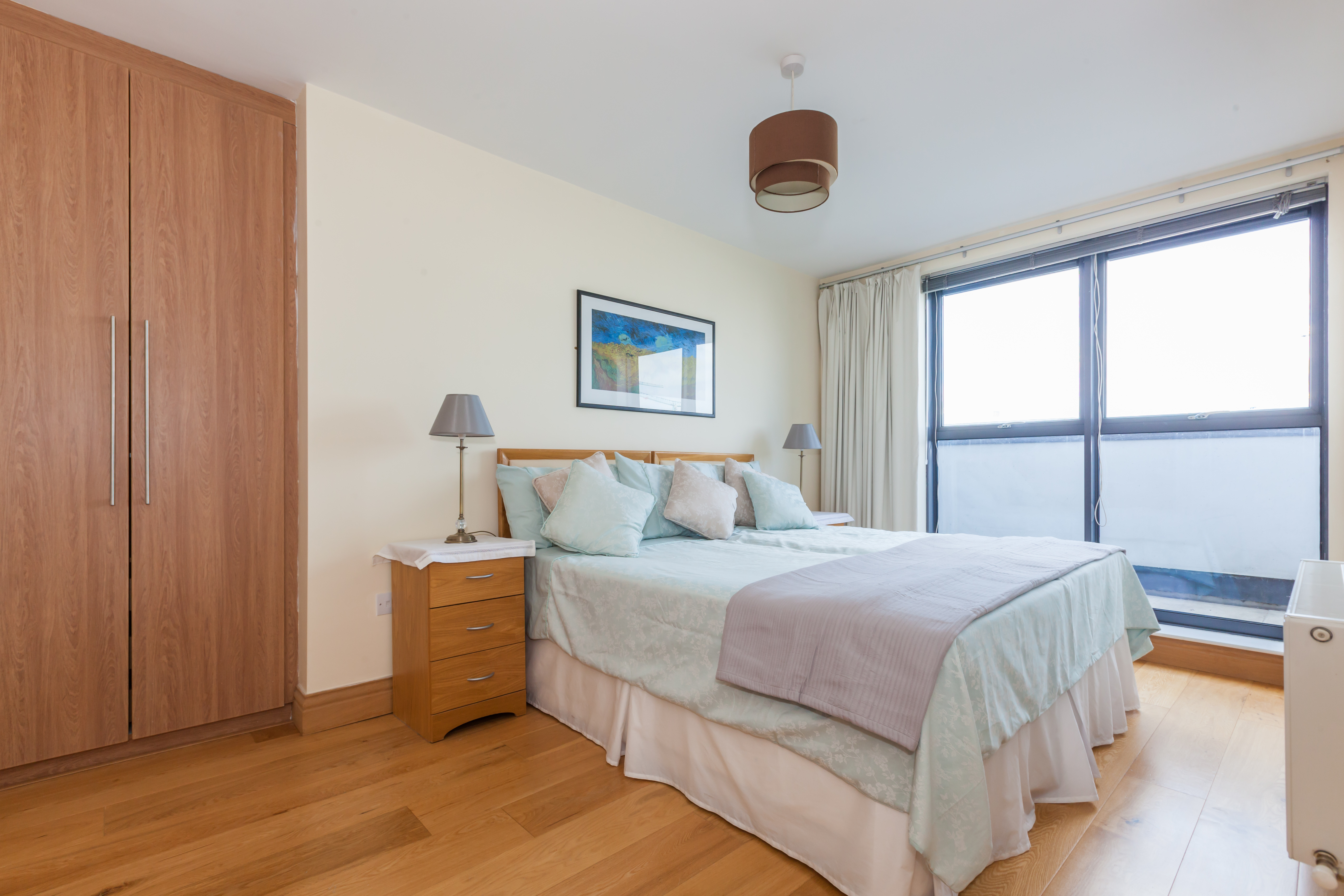 Built in wardrobes, wooden floors & floor to ceiling window