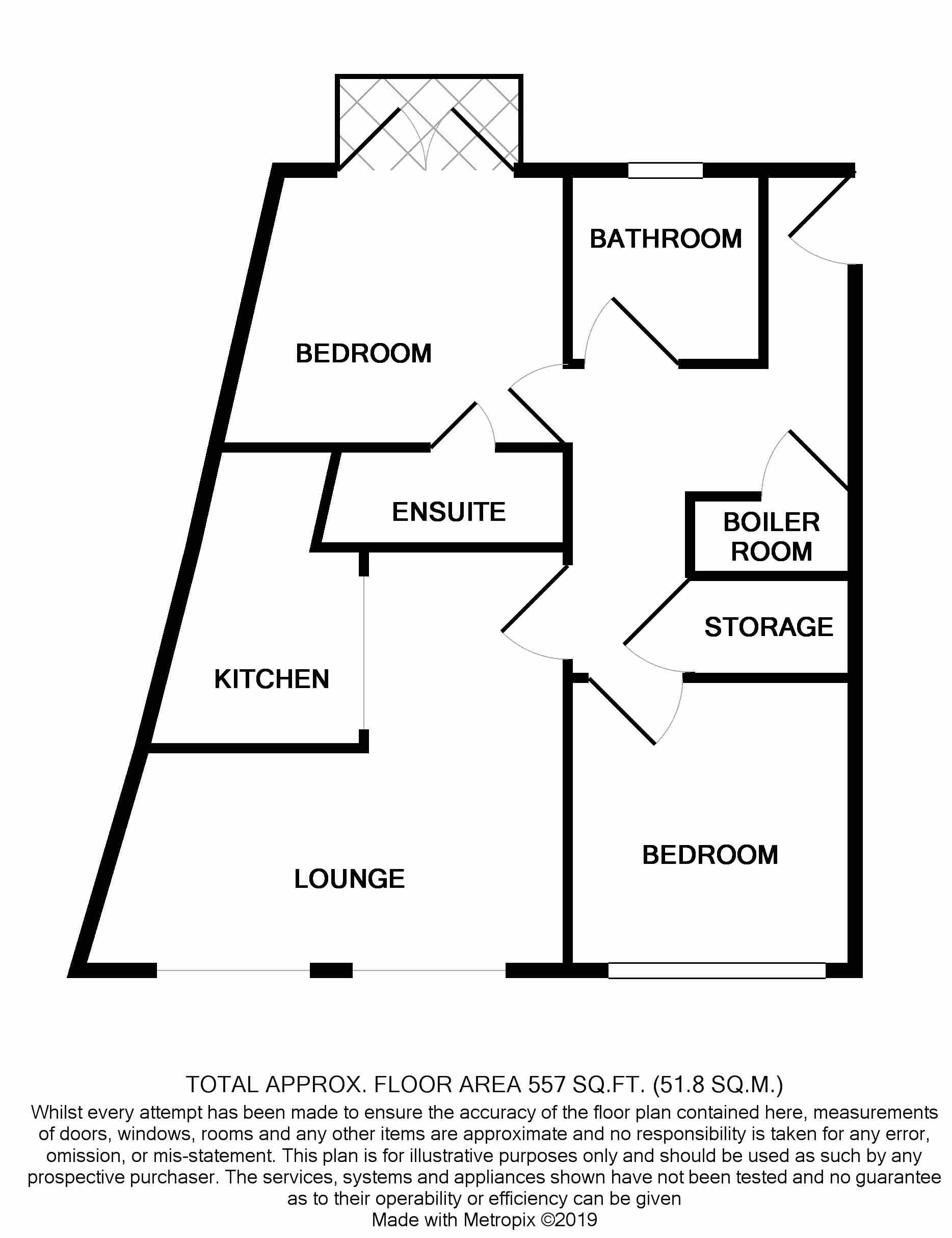 This 1st floor apartment comprises of entrance hall with storage/boiler press, storage room, double bedroom with en-suite, single bedroom, bathroom and lounge with kitchen off.