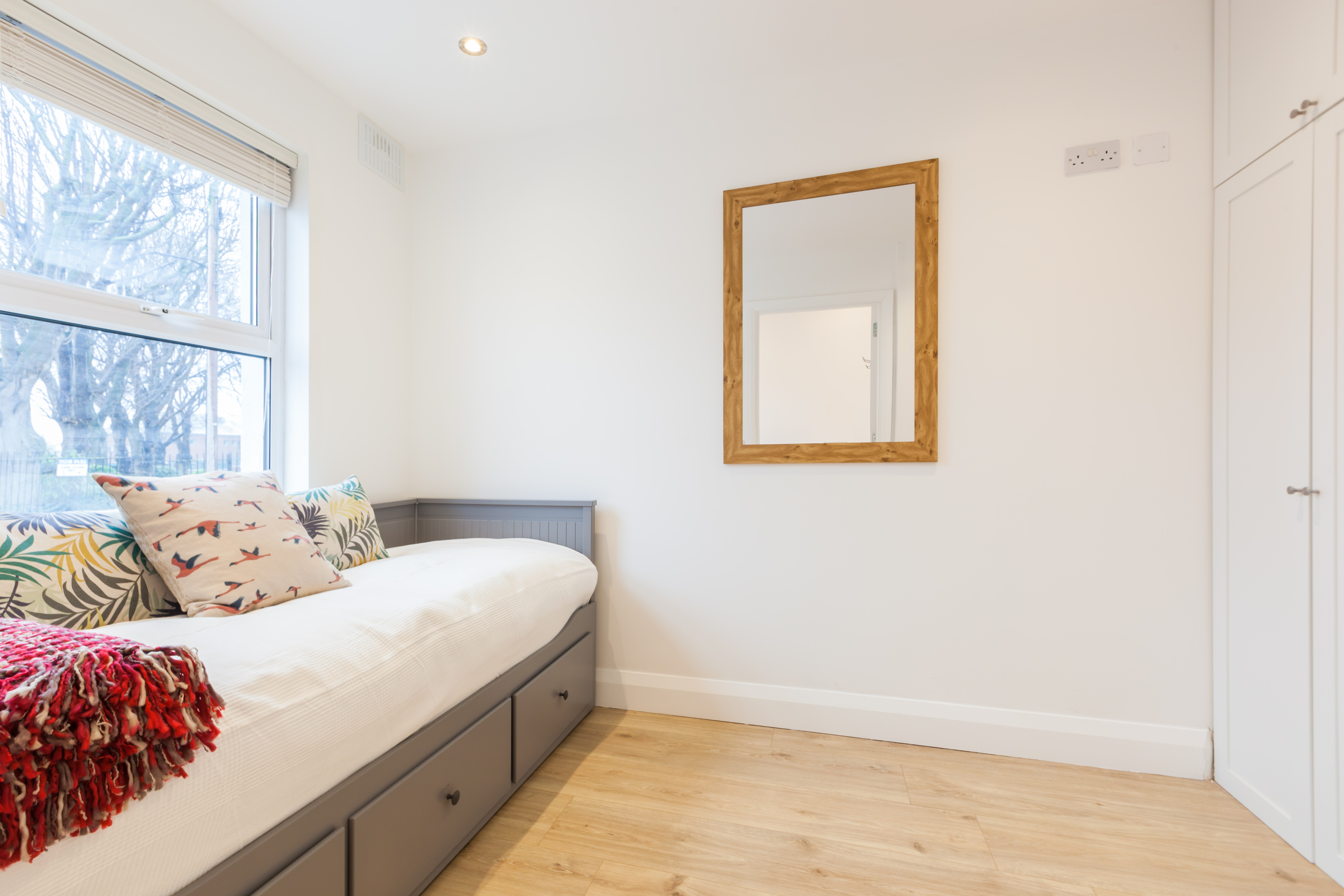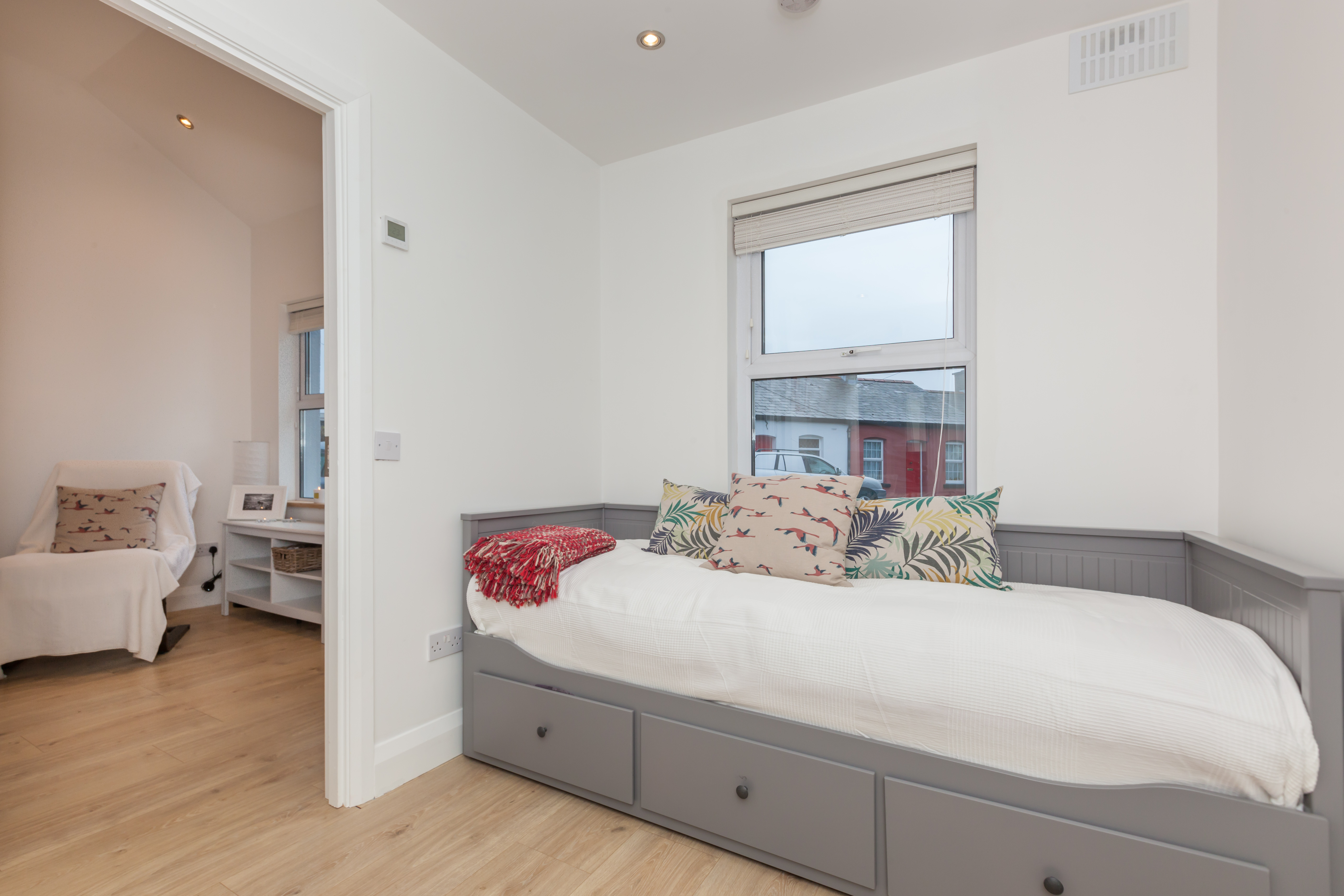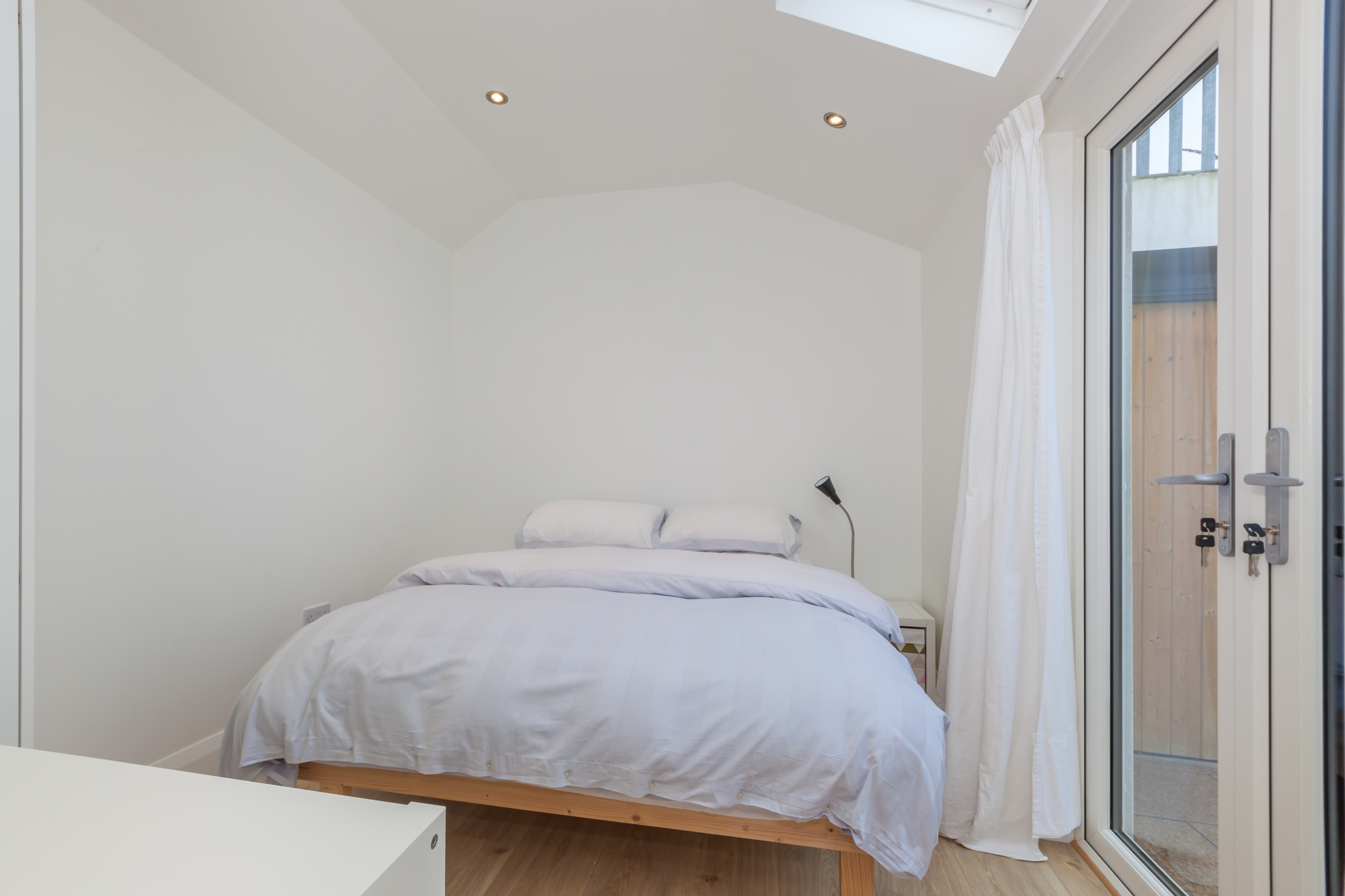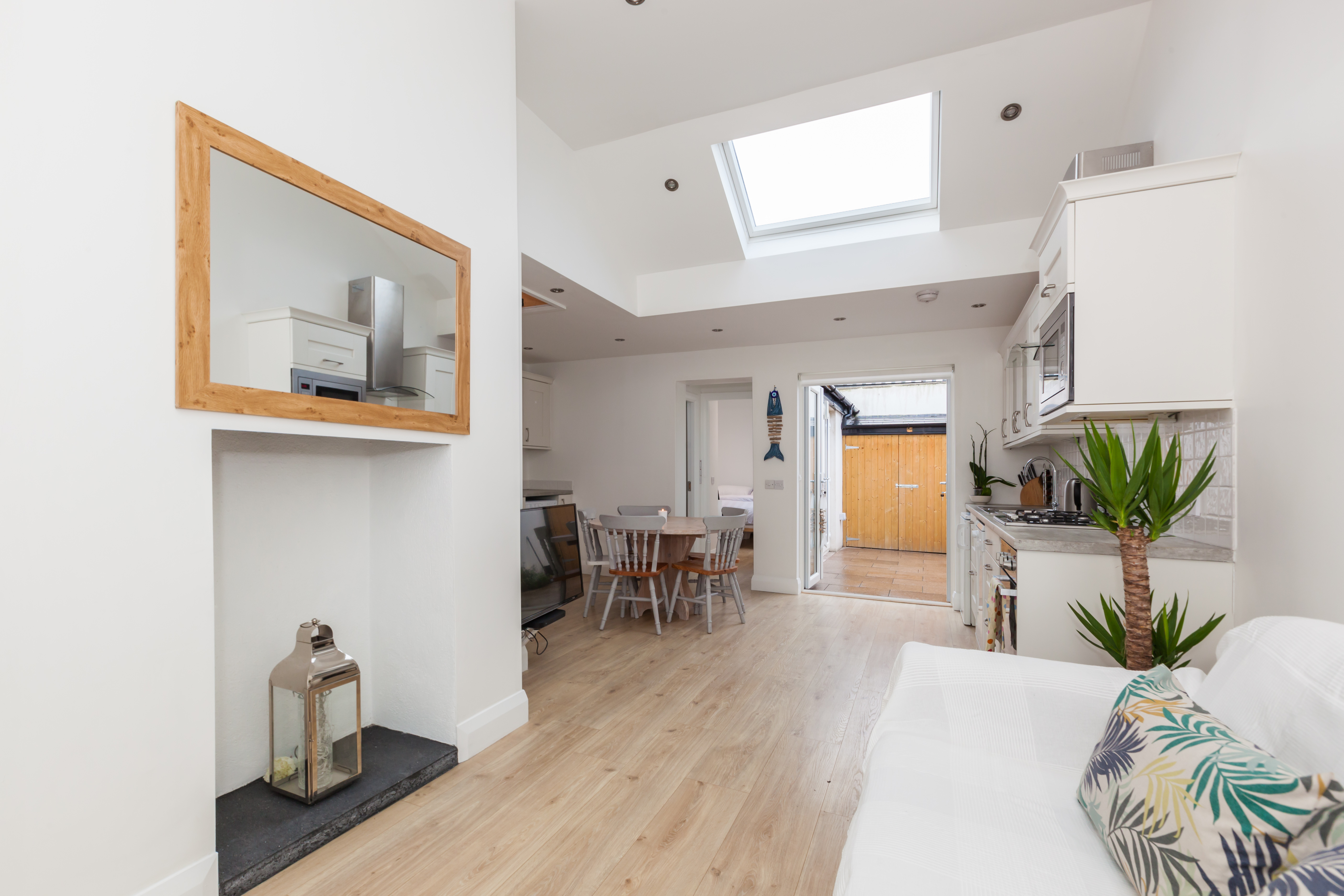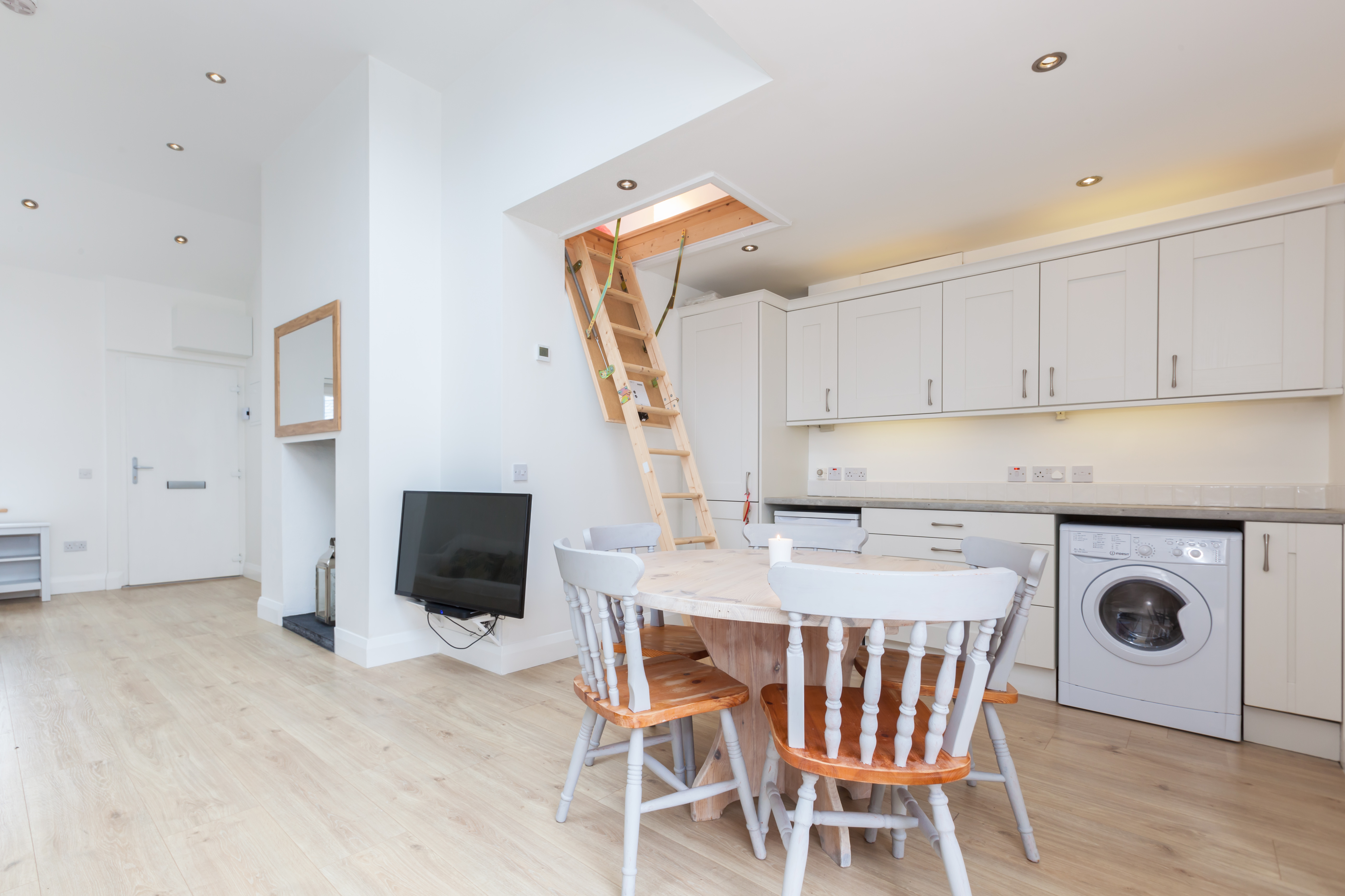 The property consists of entrance hall to open plan living room and kitchen with 12ft ceiling. The living room comes with a working refurbished chimney and LED lighting throughout. The fully fitted kitchen is bright and spacious and comes with a gas hob and all modern appliances. The first double bedroom comes with built in wardrobe and ensuite bathroom. The master bedroom located at the rear of the property comes with patio doors to backyard and skylight for even more light and comfort. The family bathroom is immaculate and finished to a high standard. The gem of the property is the reading room located in the attic. This hide away room is unique in structure and offers an oasis of comfort.