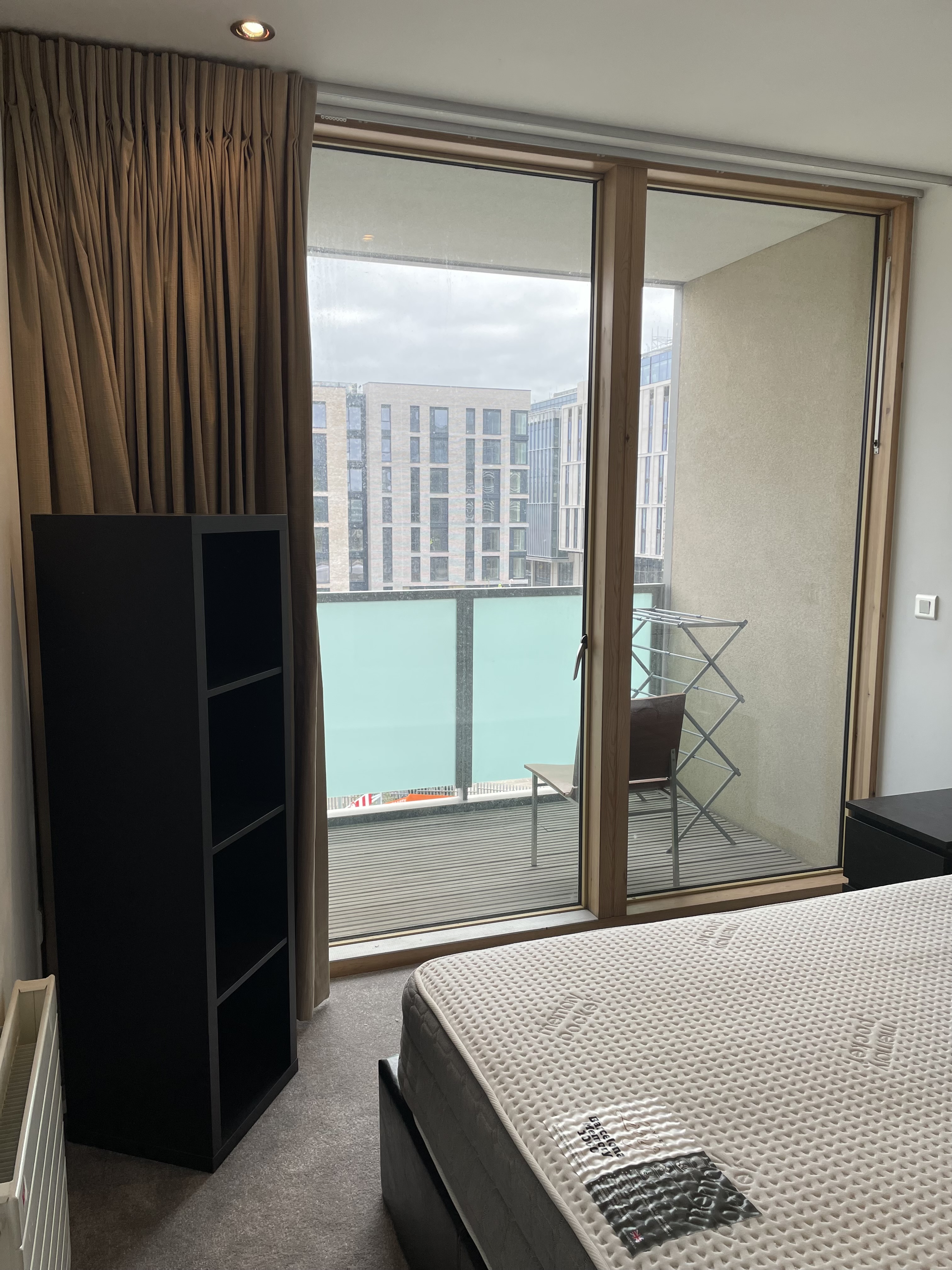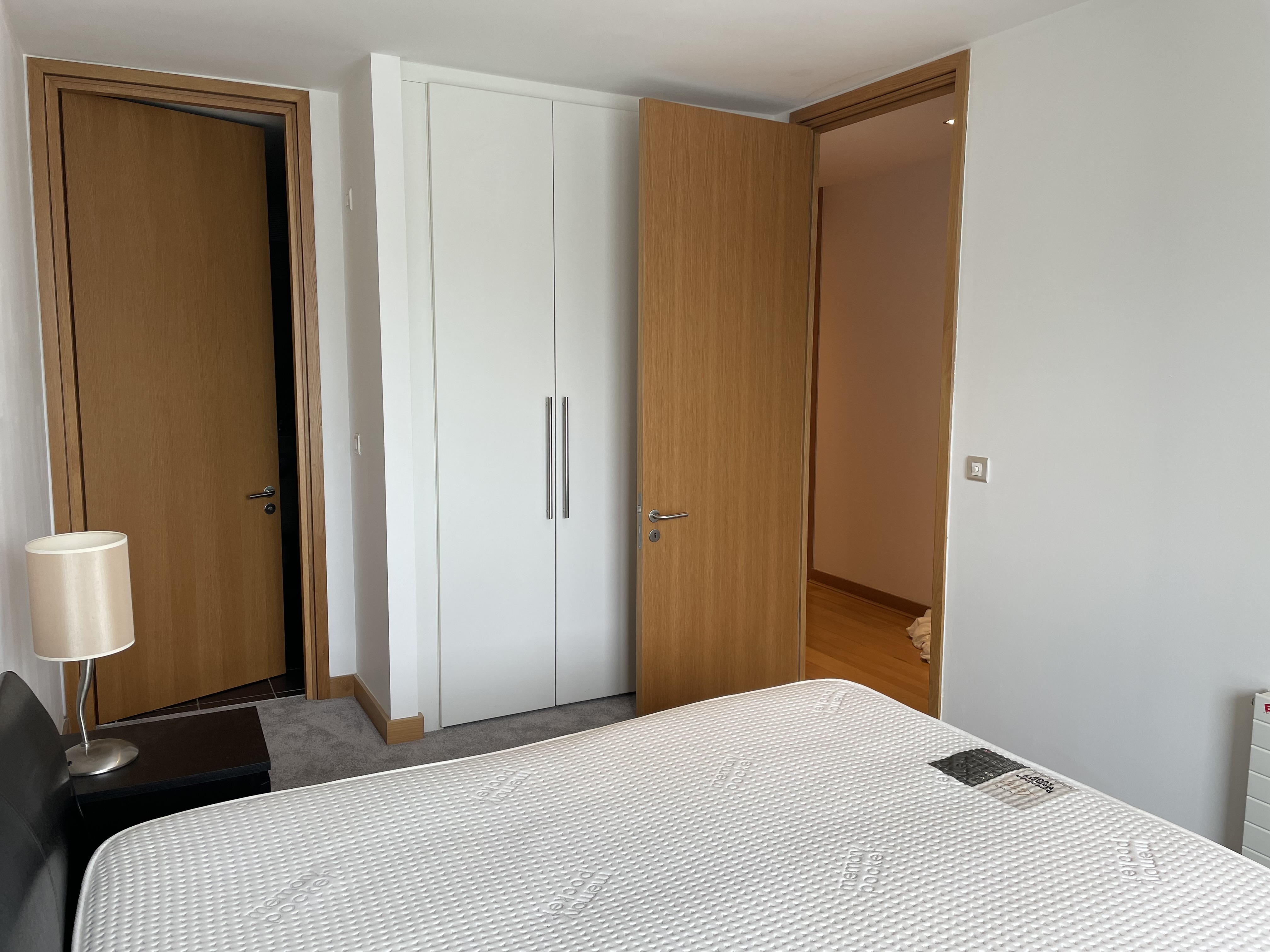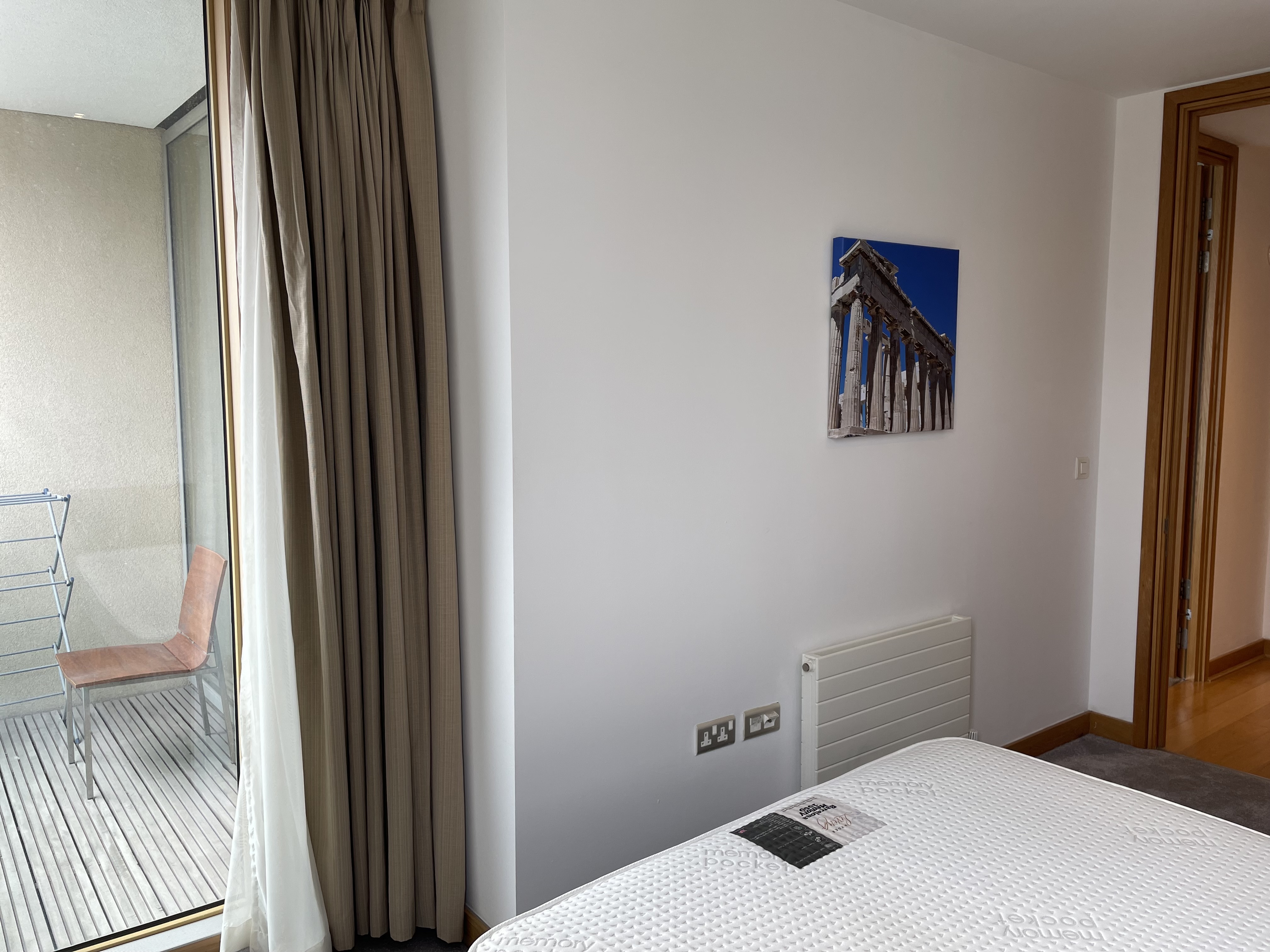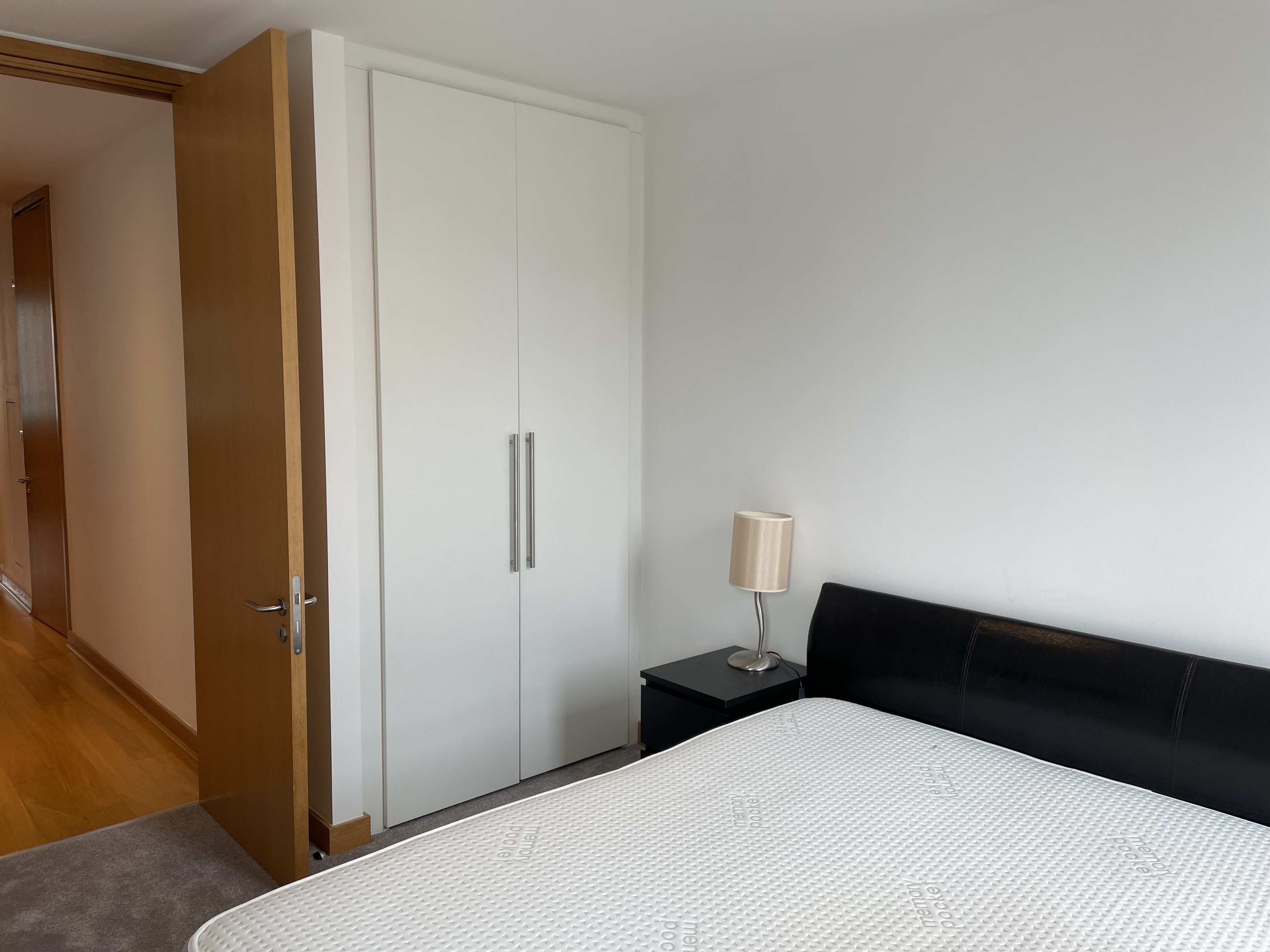The master bedroom is located on the east side of the apartment and comes with a king-size bed, storage, balcony, and ensuite bathroom. This ensuite comes with both shower and bath facilities.