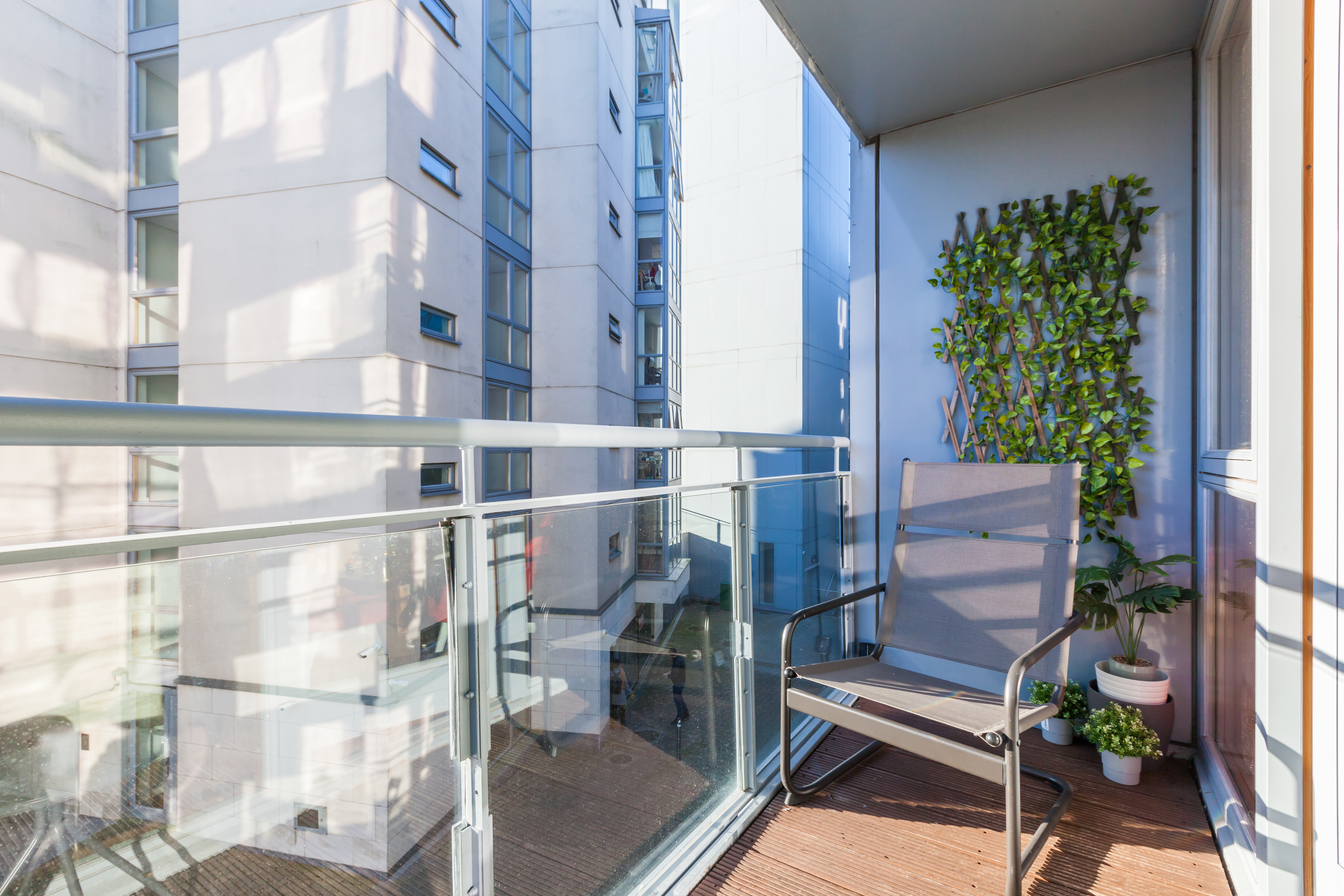 The balcony is just off the living room and is perfectly positioned for morning coffee or an evening drink.