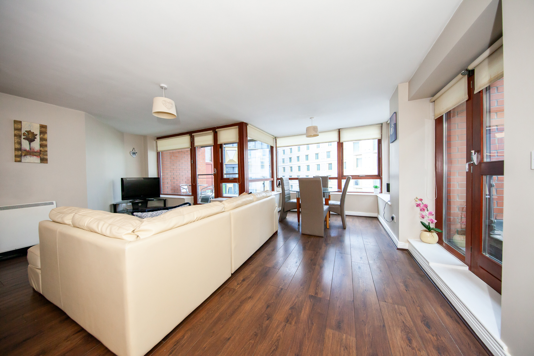 Madden Property is truly honoured to present to the market this dual aspect, superbly appointed and spacious two bedroom, two bathroom 4th floor apartment in Dublins North Docklands. No. 23 is presented in excellent decorative order throughout and is c.85sq.m in size. The well-appointed accommodation comprises of a large living / dining room, kitchen, two balconies two double bedrooms, en-suite, storage closet and family bathroom. The apartment is completed by an extra large parking space in the secure underground parking. Upon entering the apartment you are met by the entrance hallway. To the right is the large open plan living/dining room, there is a large balcony and the kitchen off the living space. To the right on the hallway are the two double bedrooms, storage closet and family bathroom. The master bedroom has a south facing balcony and ensuite with external window.