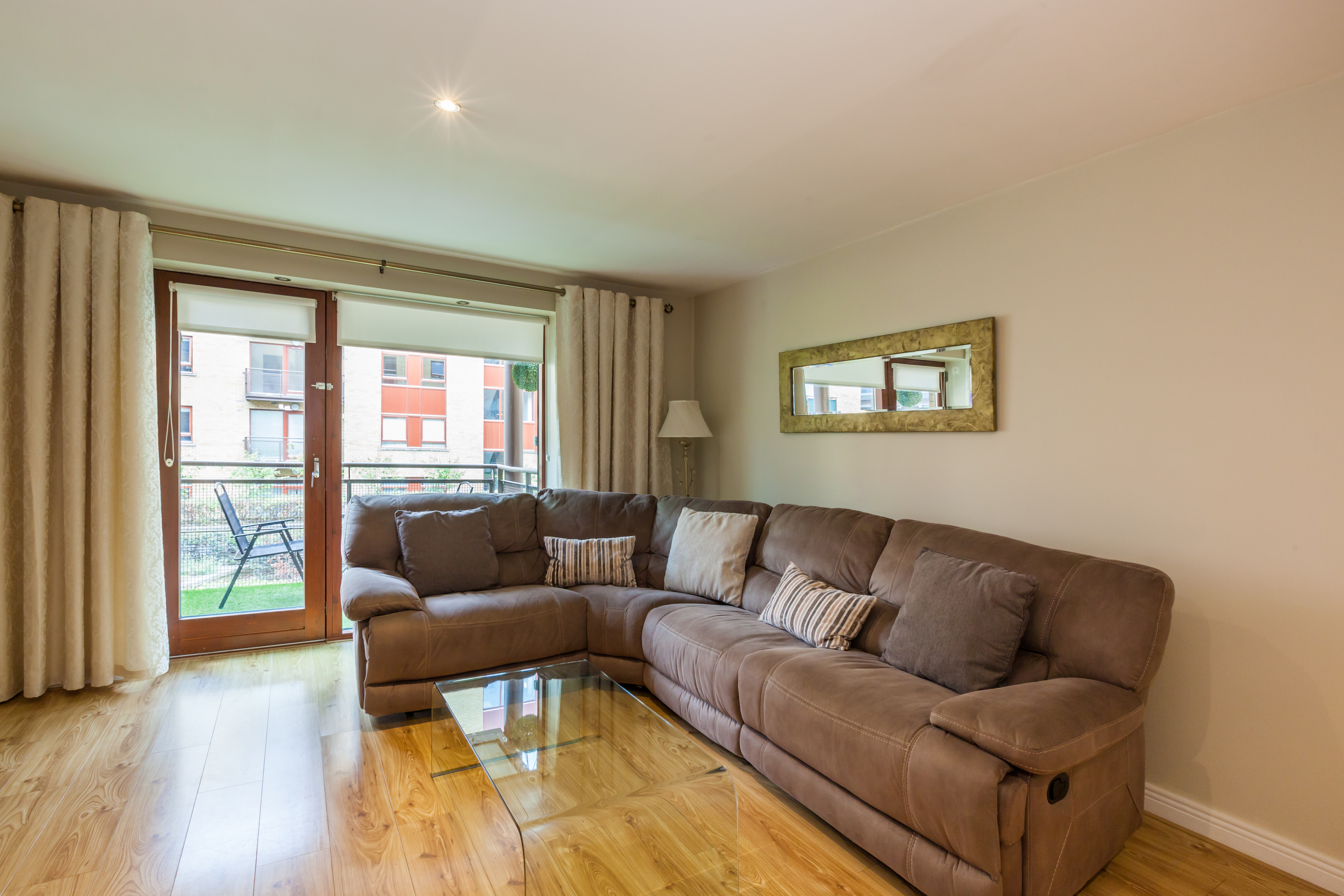 Living/dining room – 4.2m X 4.8m Bright, airy living space with a south-facing orientation. Completed with wooden floors and access to a large, private balcony overlooking the internal courtyard.